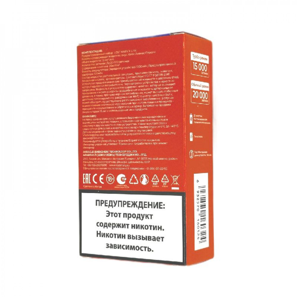 Технические характеристики Набор Lost Mary X-Link 20000 - Гранатовый всплеск